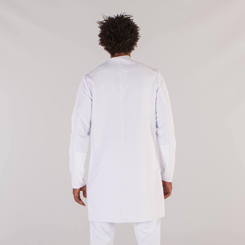 - Descripción: Bata de hombre de manga larga – Dos bolsillos en delantero – Un bolsillo de ojal en pecho – Elástico en antebrazo – Botones ocultos – Cuello Mao – Largo aprox.: 98 cm – Prenda holgada.