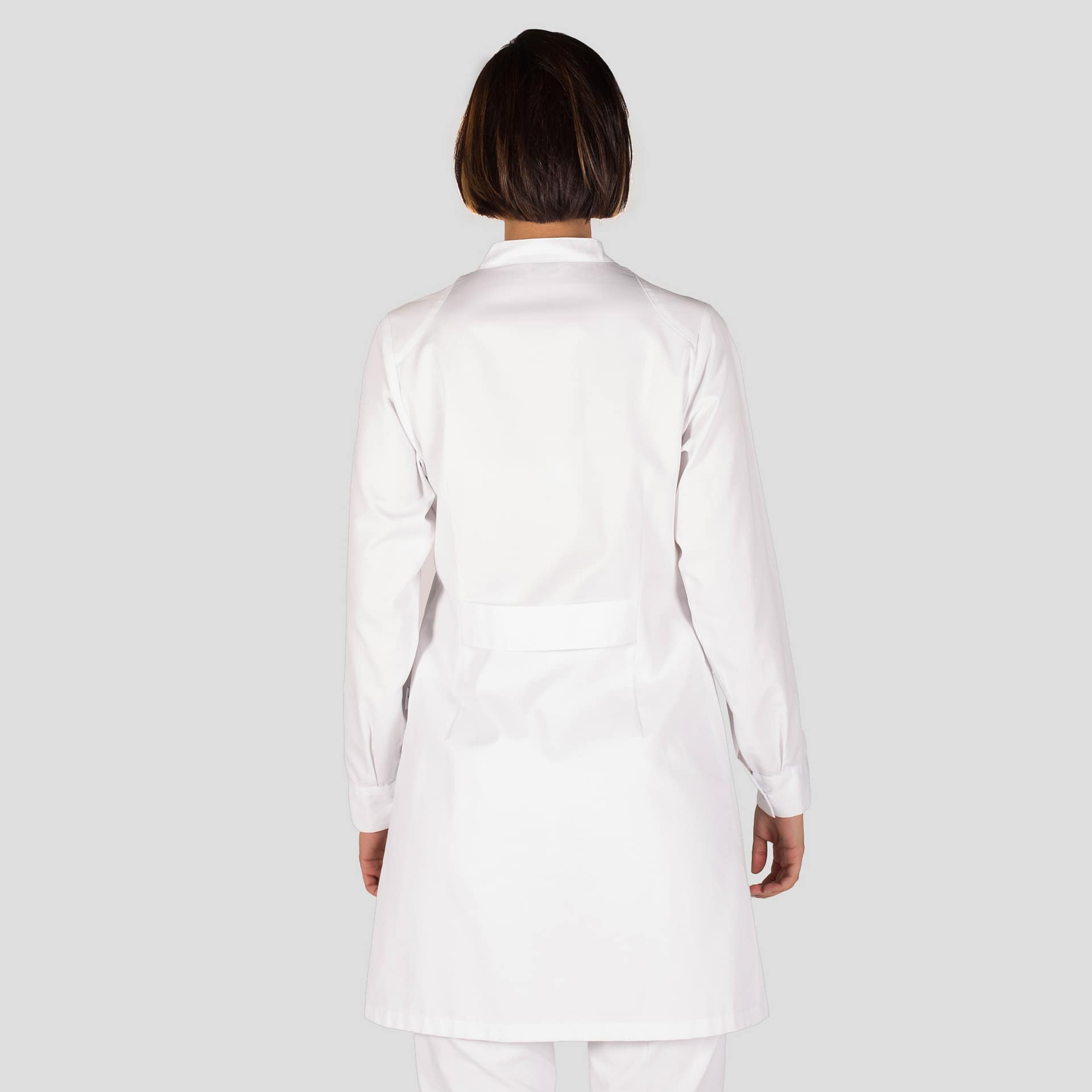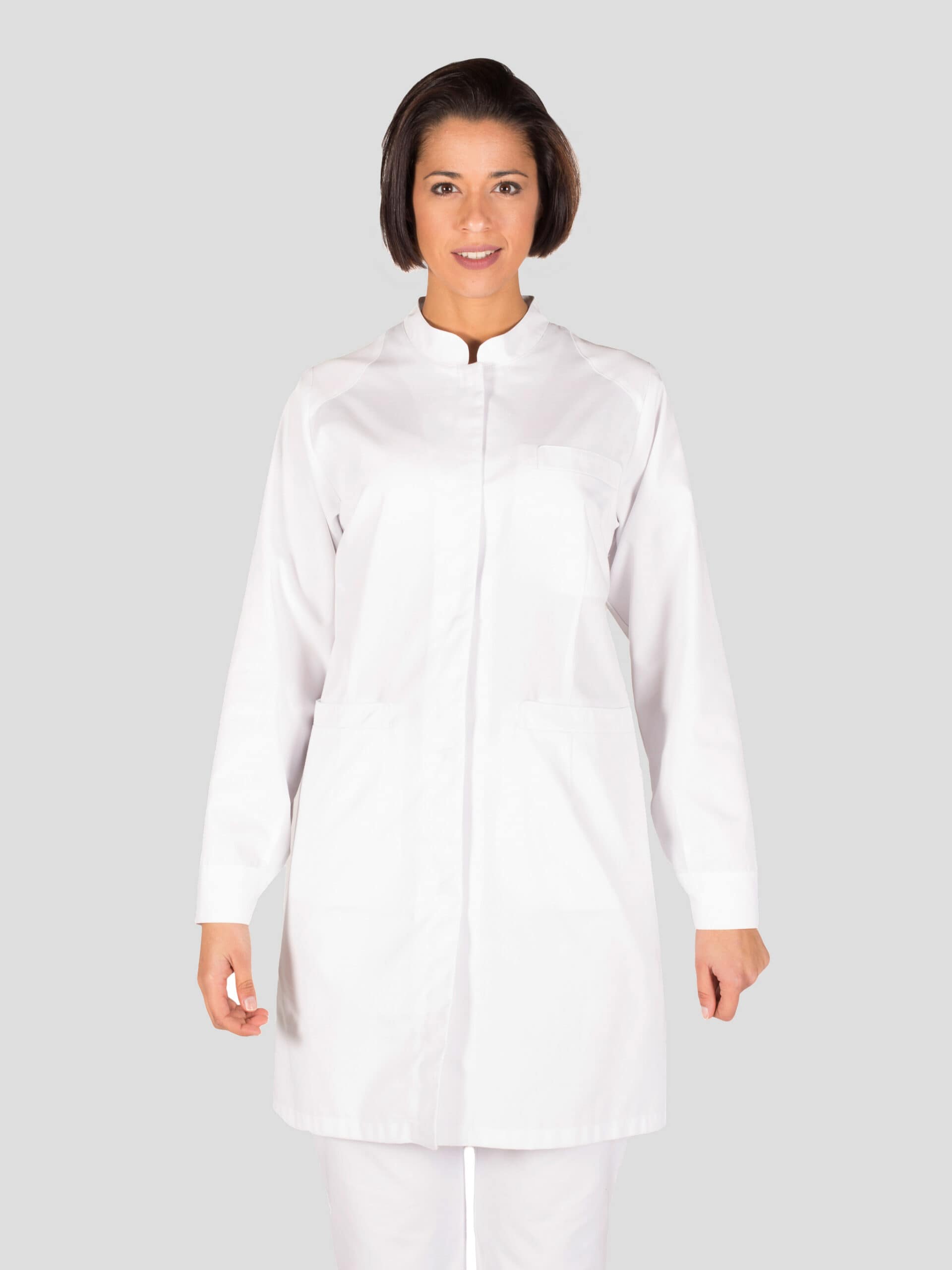 - Descripción: -Bata de mujer de manga larga. -Bata con cierre de botones a presión ocultos. -3 bolsillos ocultos con tapeta. -Cuello mao. -Puños con botón de presión. -Largo aprox. 93,5 cm.