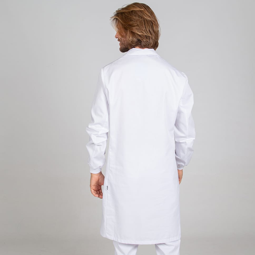- Descripción: -Bata unisex de especial alimentación. -Puño acrílico. -Botones de presión ocultos. -Bolsillo de parche interior. -Largo aproximado 105 cm. -Prenda holgada.