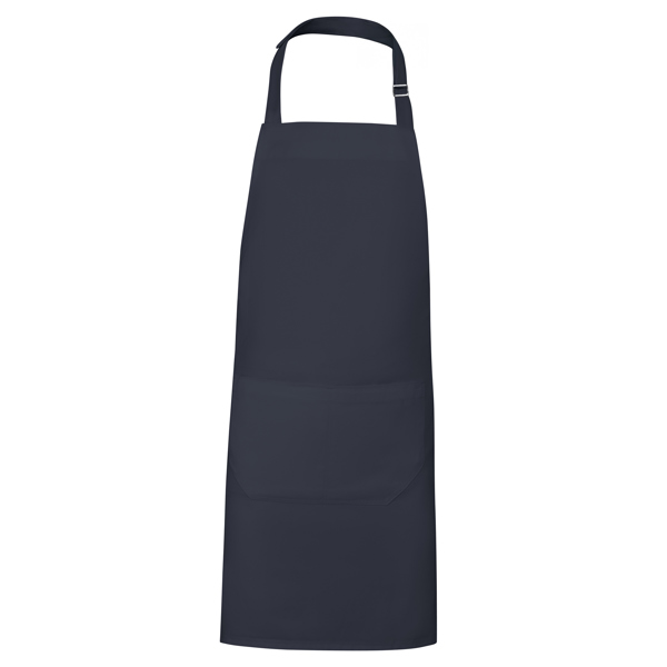 - Descripción: Delantal largo de sarga en poliéster reciclado y algodón reciclado. Tirante con cierre ajustador. Cintas laterales para lazada. Dos bolsillos frontales.