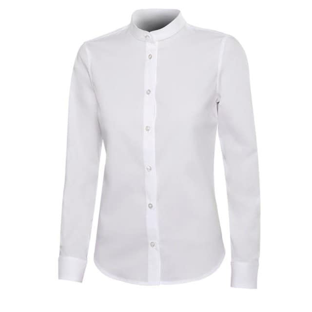 - Descripción: Cierre central con tapeta inglesa. Cuello tirilla. Canesú en la espalda. Pinzas de entalle en pecho y espalda. Puño redondeado con cierre de botón. Botón de repuesto.