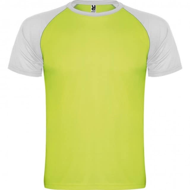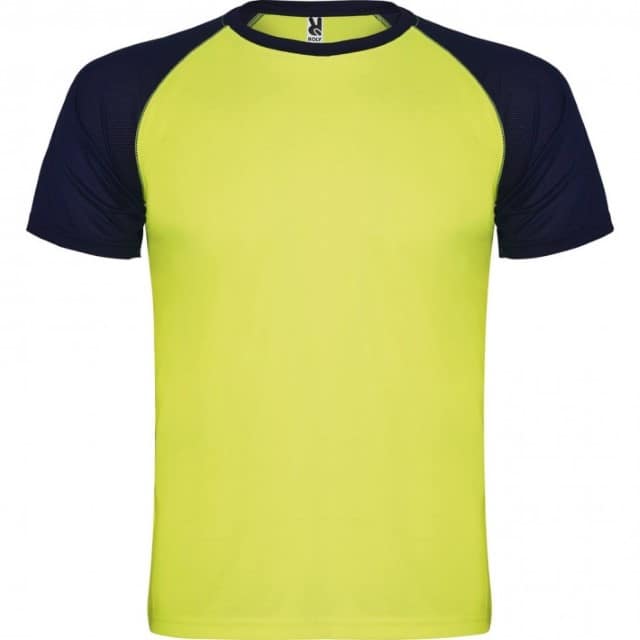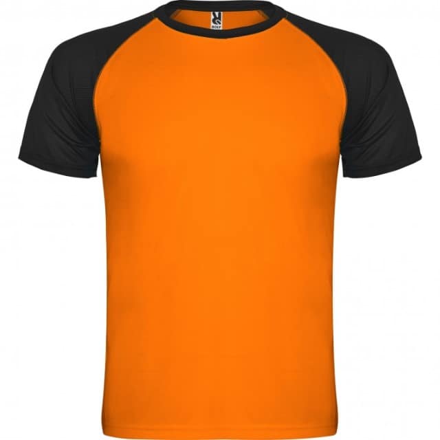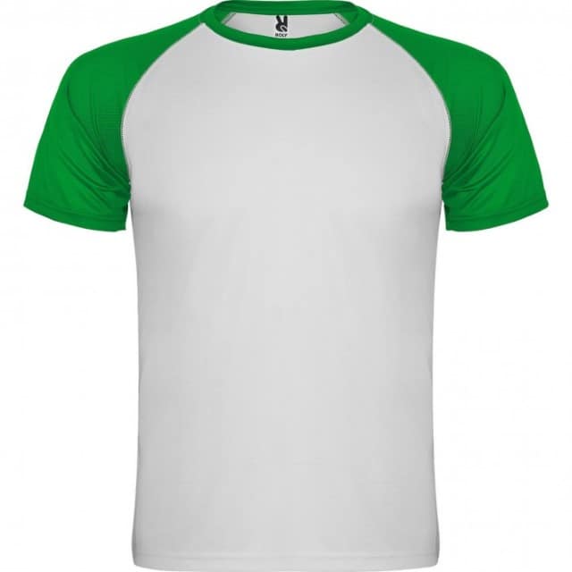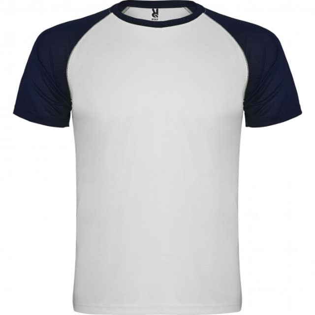 - Descripción: Camiseta deportiva de manga corta estilo ranglan en contraste. Cuello redondo en contraste con cubrecosturas de refuerzo.