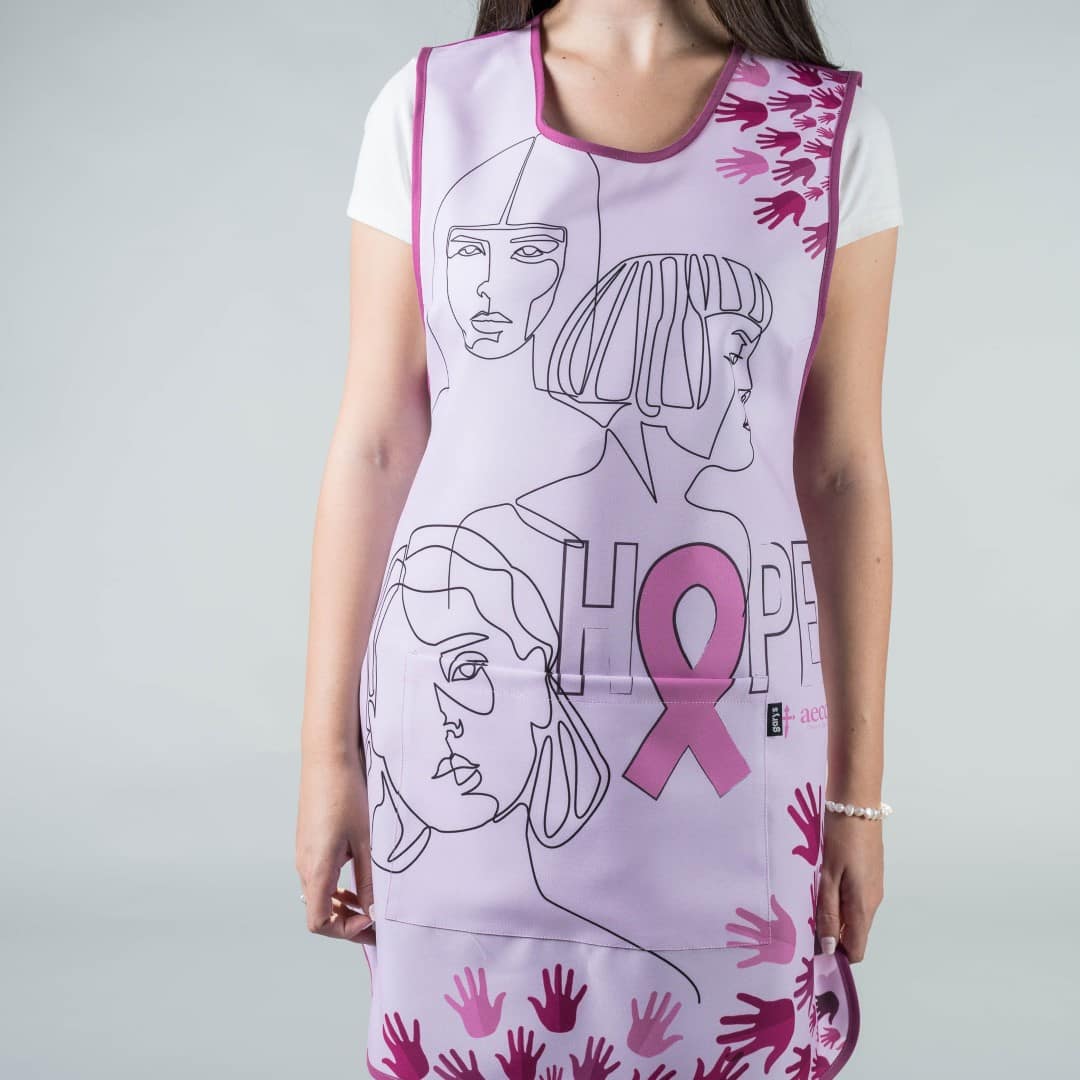 - Descripción: Casulla tipo estola solidaria en colaboración con la Asociación Española Contra el Cáncer. Cuenta con un bolsillo central, pinzas en espalda y tiras laterales para ajustar. Ideal como uniforme para bares, restaurantes, cafeterías, limpieza, hogar o comercio en general.