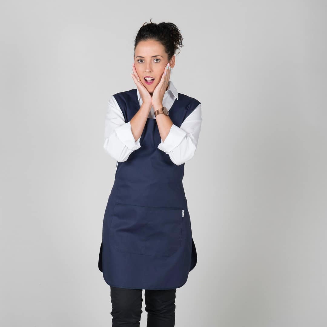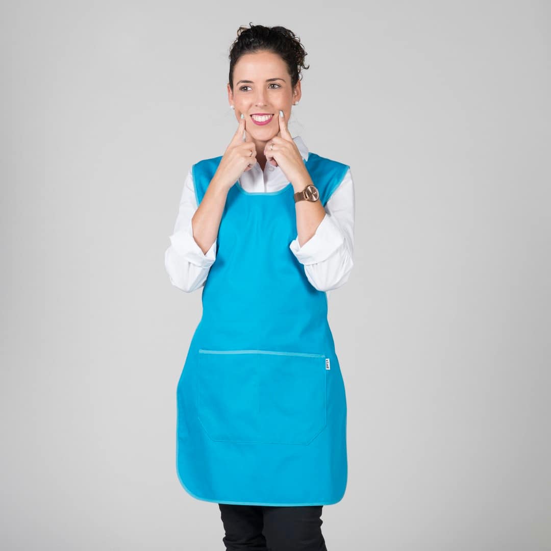 - Descripción: Dos bolsillos en delantero. – Bies en extremos para anudar. – Medida 70 x 51 cm