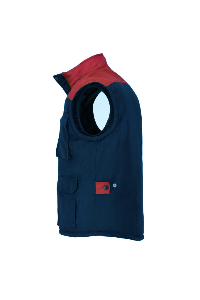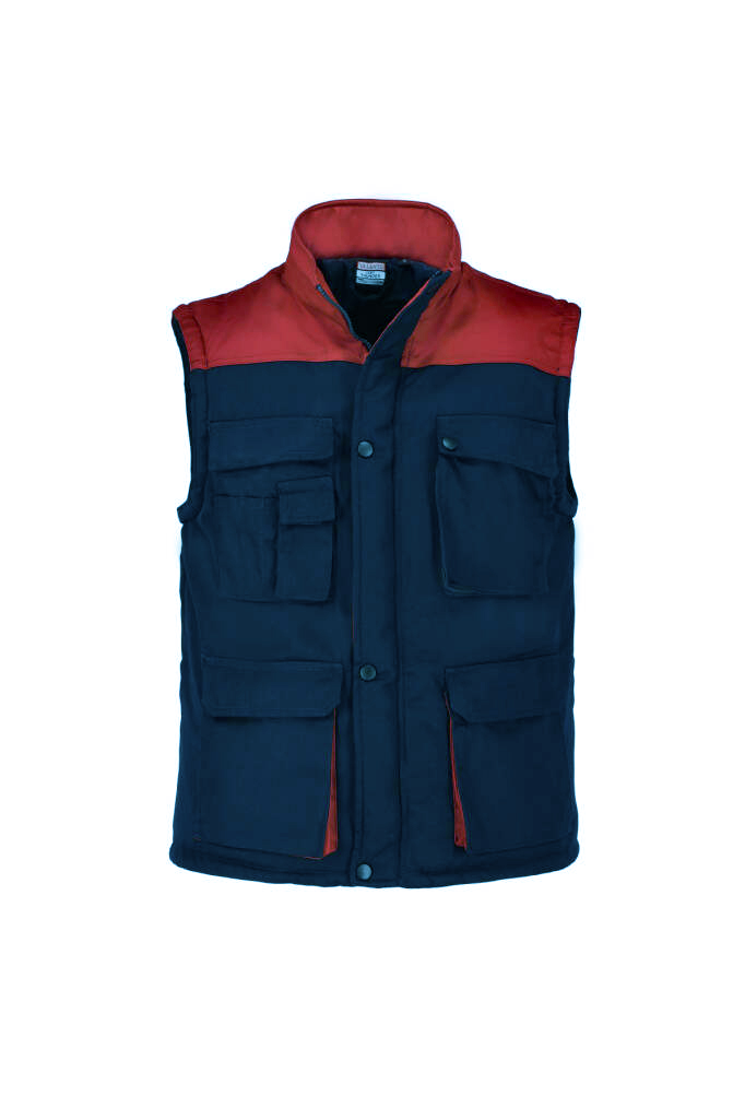 Chaleco de trabajo multibolsillos acolchado, diseño bicolor.