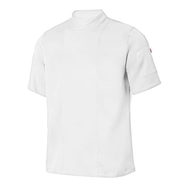 - Descripción: Tejido con tratamiento antibacterias y repelente de líquido. Cierre central asimétrico, con botones automáticos ocultos. Cuello tirilla. Espalda con tejido transpirable Coolmax, de una sola pieza. Manga tipo sastre. Un bolsillo: 1 bolsillo de parche en manga izquierda con dos compartimentos.