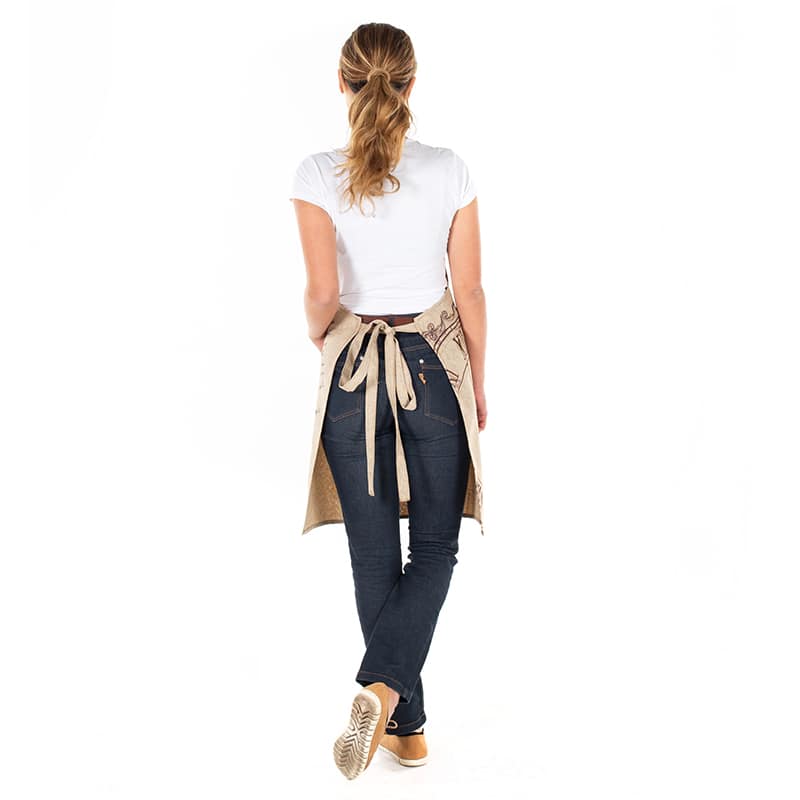 - Descripción: -Delantal con peto estampado. -Un bolsillo delantero. -Hebilla para regular la tira del peto. -Enganche mediante hebilla. -Medidas 78 x 66 cm.