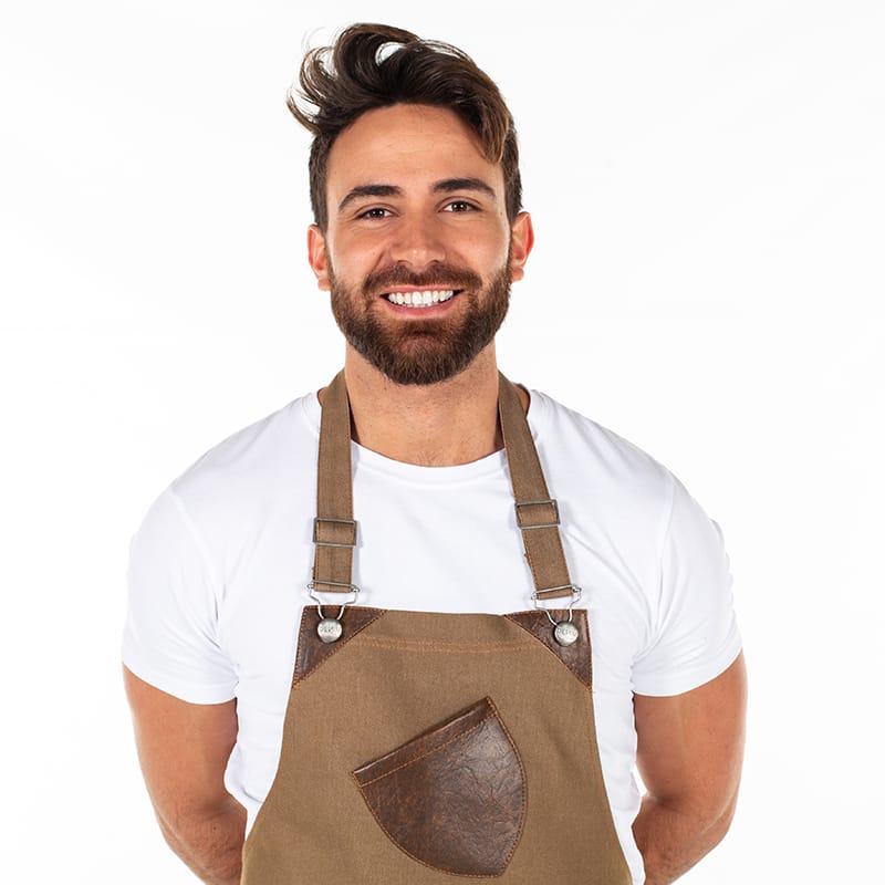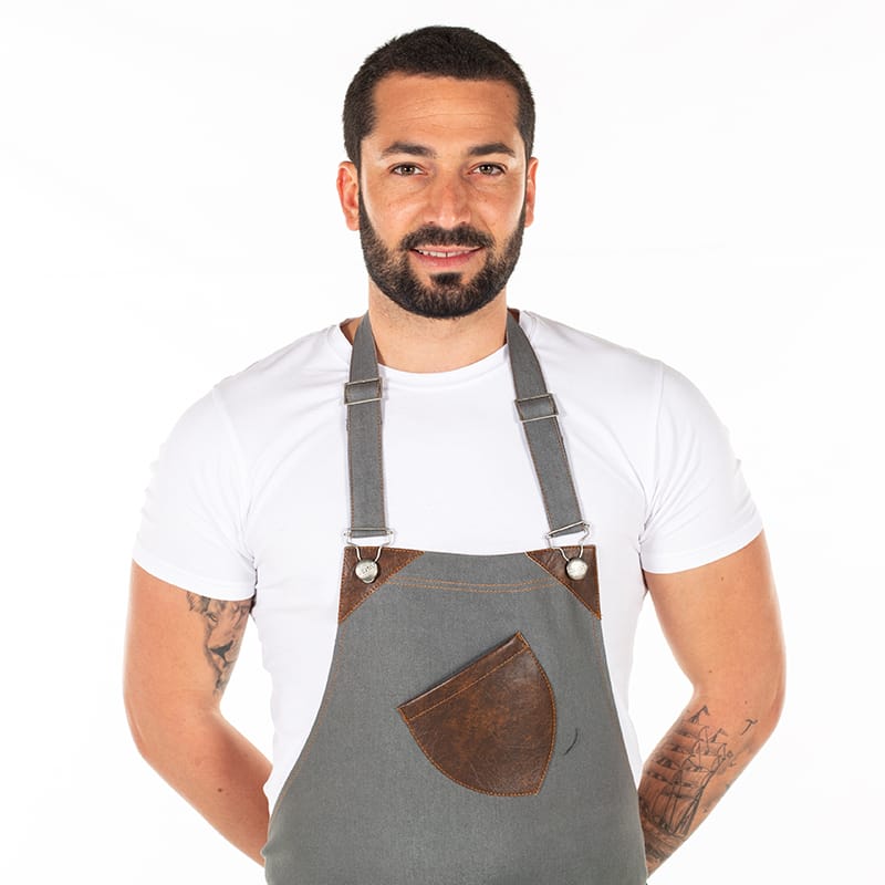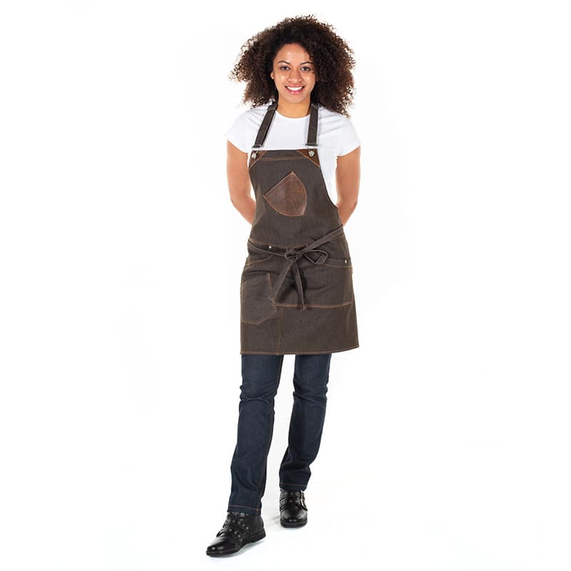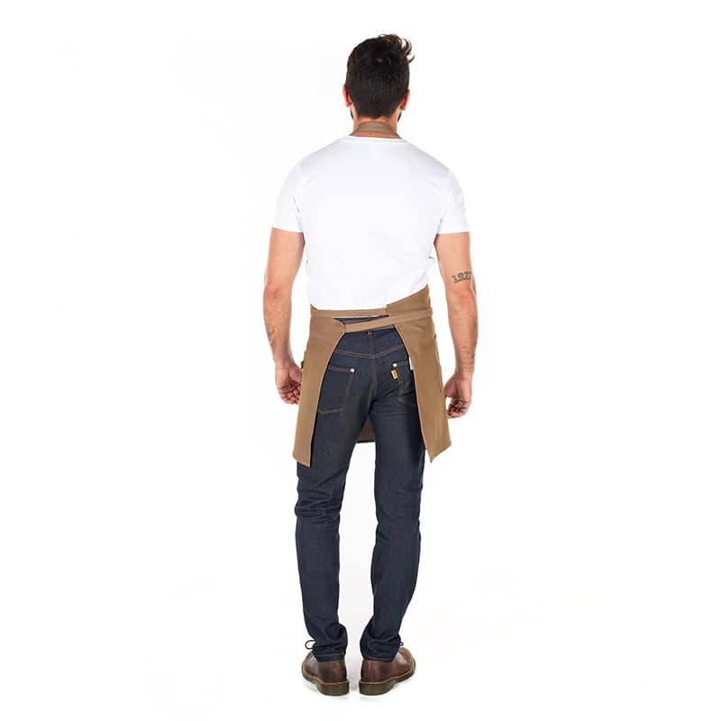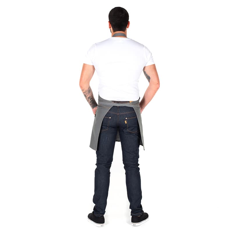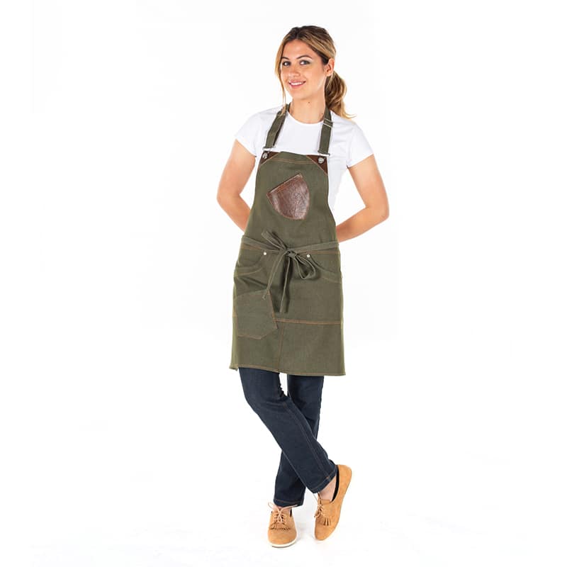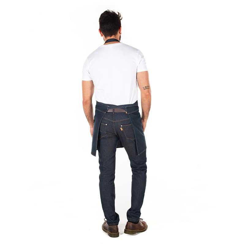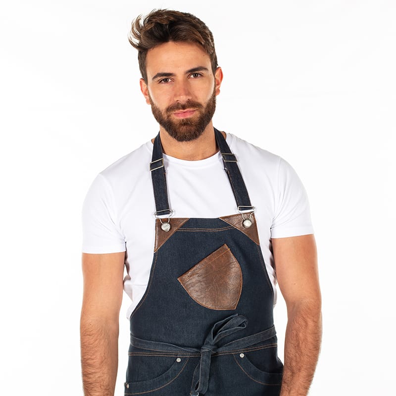 - Descripción: -Delantal con peto de vaquero elástico. -Cinco bolsillos delanteros. -Hebilla para regular tira de peto. -Enganches mediante botones y hebilla para el peto. -Medidas 74 x 80 cm.