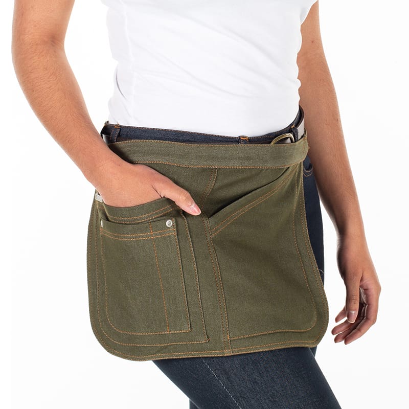 - Descripción: –Delantal corto vaquero. -Cuatro bolsillos delanteros. -Hebilla para regular las tiras de ajuste. -Enganche mediante mosquetón y anilla. -Medidas del delantal 28 x 39 cm. Medidas cintura talla P: 77 x 100 cm. Medidas cintura talla G: 95 x 135 cm.