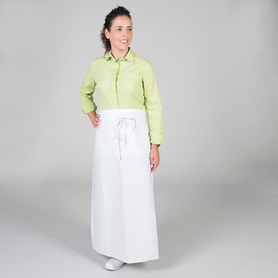 - Descripción: Delantal largo liso. – Tres bolsillos delanteros. – Medidas 100 x 100 cm.