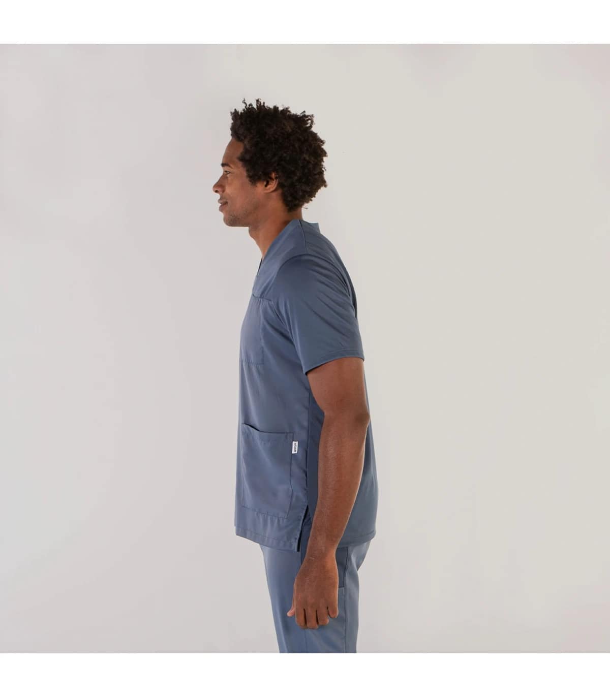 - Descripción: Casaca para hombre en manga corta, con cuello pico, dos bolsillos de parche delanteros y un bolsillo invisible en pecho izquierdo. Prenda holgada, con aberturas laterales. Confeccionada en PEACH de 100% Poliéster, un tejido disponible en colores actuales, con tecnología que evita el paso de salpicaduras de agua y fluídos, altamente transpirable, elegante acabado satinado y textura de piel de melocotón.- Largo aprox.: 76 cm – Prenda holgada.