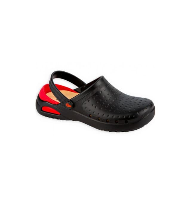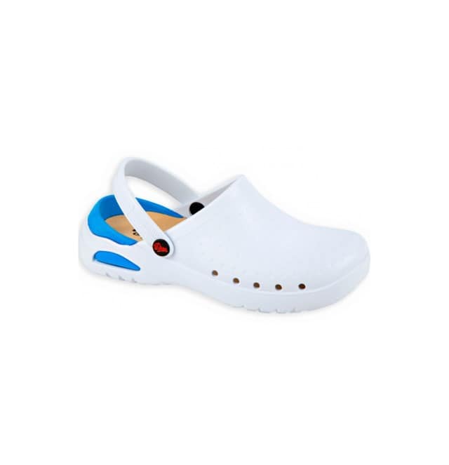 • Descripción: Zueco ultraligero de EVA, antibacteriano, libre de látex, monocasco, anatómico y antideslizante. Apto para lavado en lavadora hasta 40º. Con correa posterior abatible entre el talón y la pala, perforado en los laterales para facilitar la transpiración, la limpieza y evitar la penetración directa dentro del zueco de líquidos o fluidos. Planta de PU extraíble con grandes propiedades de recuperación de energía al andar forrada con tejido D’DRY®..