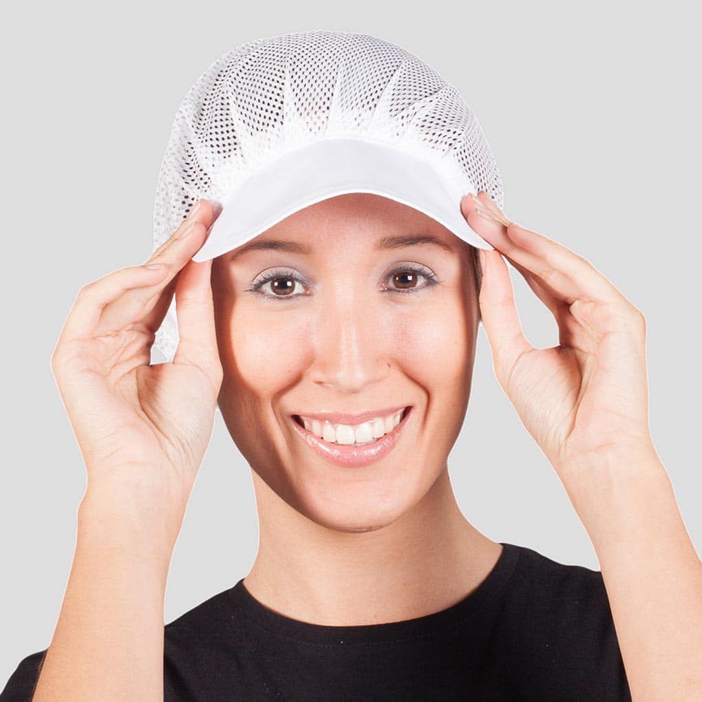- Descripción: Cofia con rejilla – Regulable con elástico – Unisex.