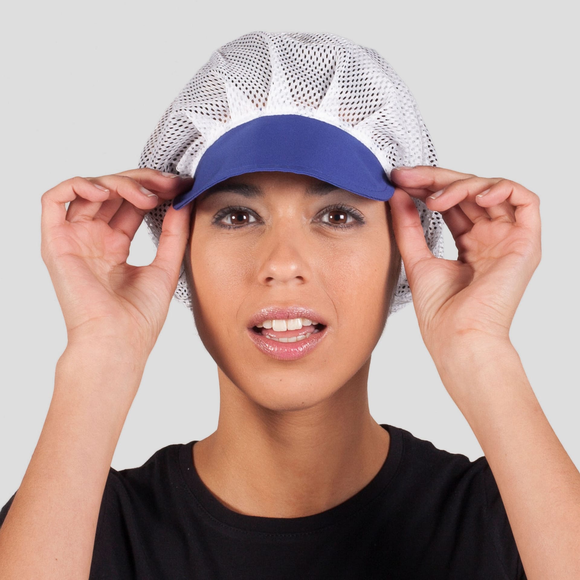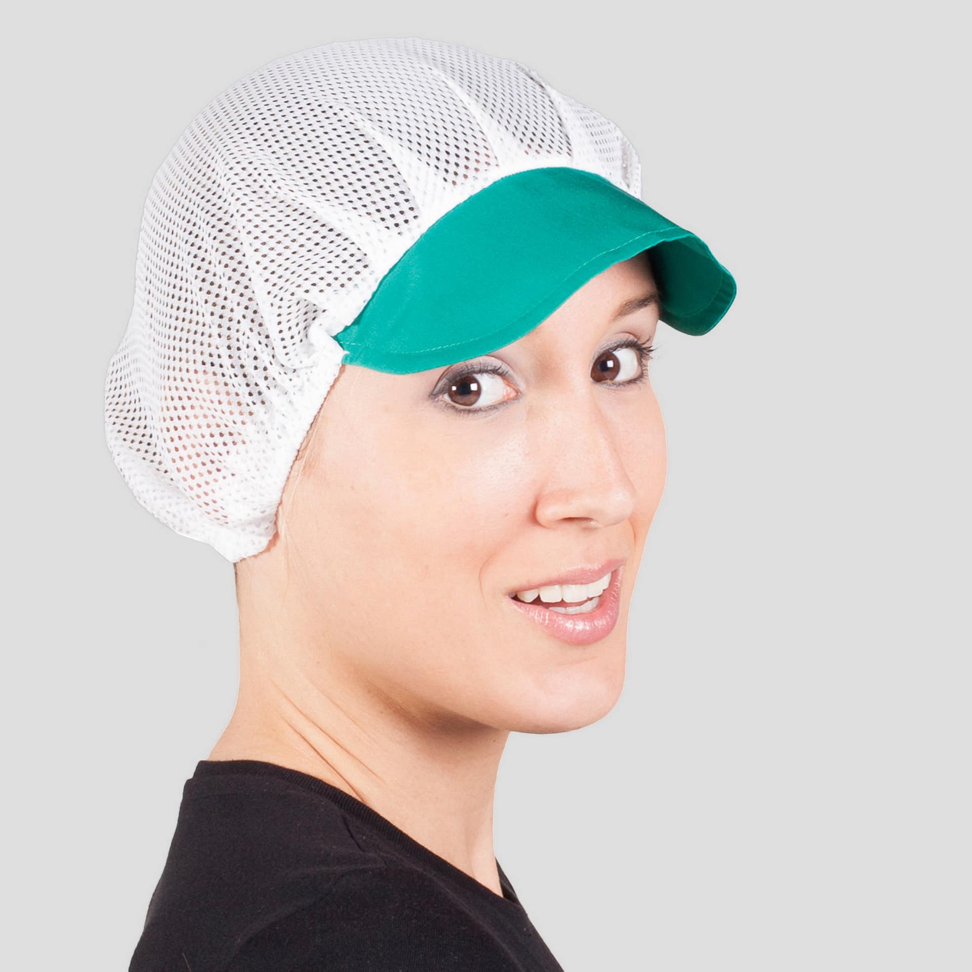 Descripción: -Cofia con rejilla. -Regulable con elástico. -Unisex.