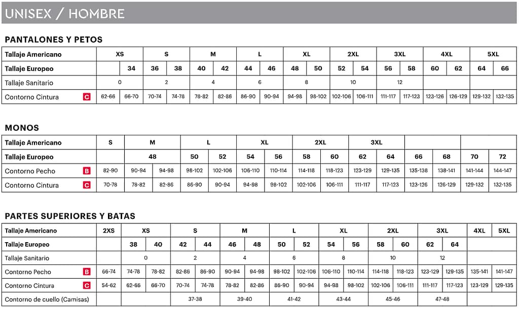 | Tallas | XS, S, M, L, XL, XXL, XXXL, 4XL, 5XL |