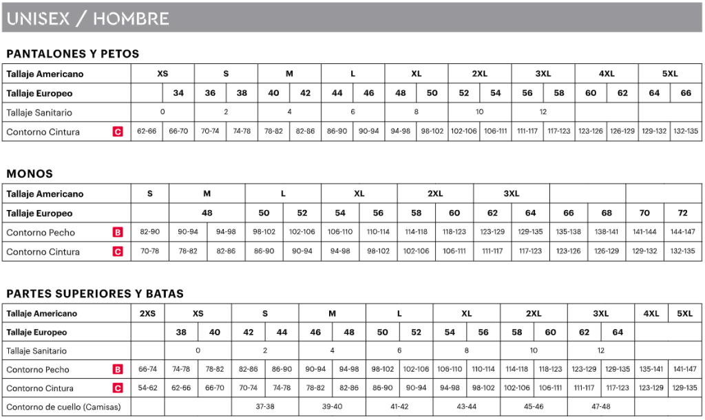 | Tallas | XS, S, M, L, XL, XXL, XXXL, 4XL, 5XL |