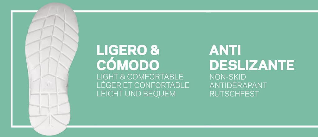 O1 = parte trasera cerrada, antiestático, absorción de energía en el tacón, suela con resaltes.