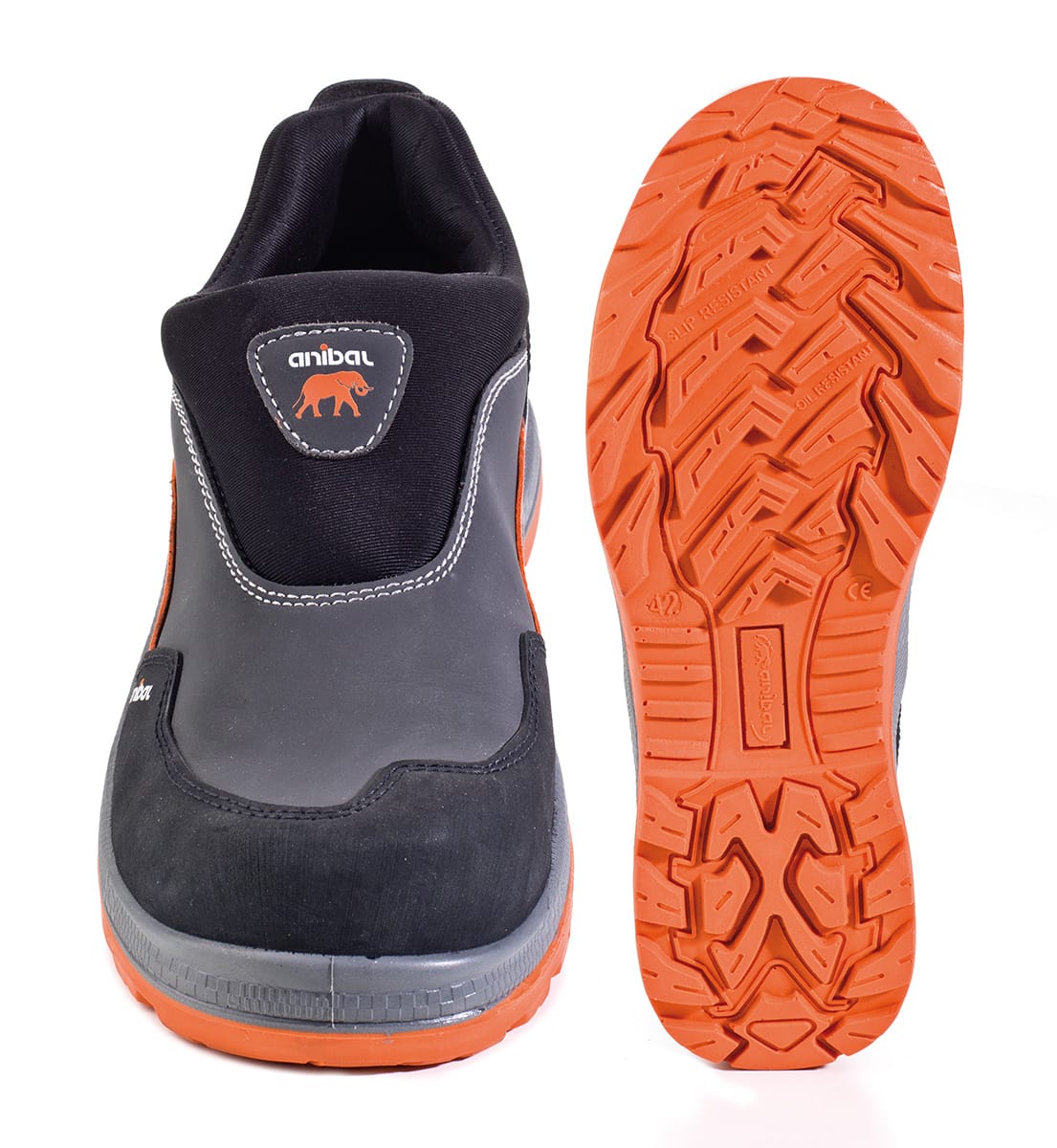 Características y ventajas: Zapato tipo mocasín sin cordoneras, muy cómodo de poner y quitar. Microfibra combinada con refuerzo de goma en las zonas mas castigadas. «Metal Free». Calzado sin componentes metálicos. Plantilla anti-perforación y tope de seguridad no metálicos. Suela Bidensidad Poliuretano máximo coeficiente antideslizamiento SRC.
