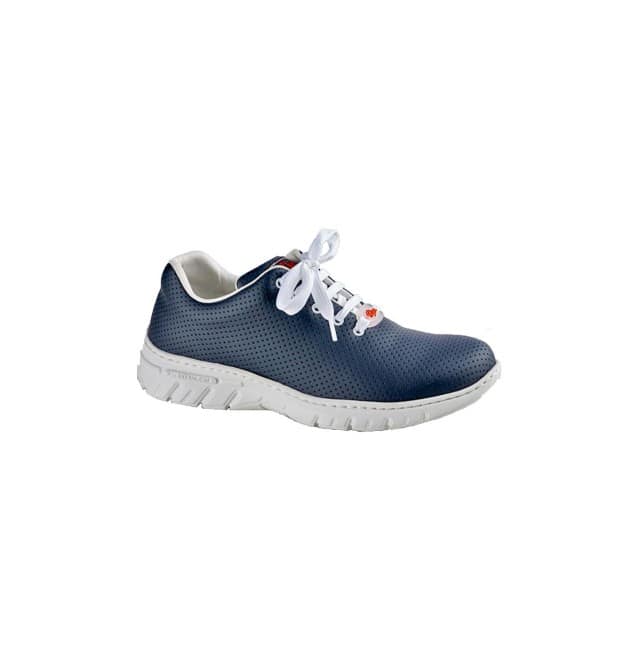 • Descripción: Zapatilla tipo blucher con corte de una sola pieza, sin costuras y con cierre de cordones. Corte de microfibra técnica transpirable D’COVER DRY®, forrado interior de tejido técnico acolchado D’DRY®, collarín acolchado en el tobillo para evitar rozaduras. Horma recta de puntera redondeada. Contrafuerte de dureza suficiente para sujetar el calcáneo. Plantilla acolchada de material textil sobre espuma de poliuretano termoconformado con tratamiento antibacterias y carbón activado. Suela de material compuesto EVA XL EXTRALIGHT®, ultra ligera, confortable, flexible y antideslizante, con diseño de pastillas planas, cantos vivos y acanaladuras amplias para facilitar la evacuación de líquidos. Apto para lavado en lavadora hasta 40º.